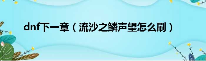 dnf下一章(流沙之鳞声望怎么刷)