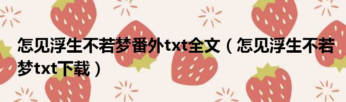 导读 大家好,今天小六子来为大家解答以下的问题,关于怎见浮生不若梦番外txt全文,怎见浮生不若梦txt下载这个很多人还不知道,现在让我们一起来