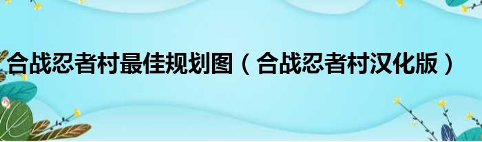 大家好,今天小六子来为大家解答以下的问题,关于合战忍者村最佳规划图,合战忍者村汉化版这个很多人还不知道,现在让我们一起来看看吧!