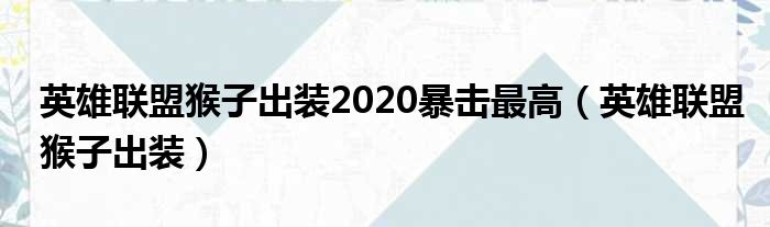 英雄联盟猴子出装2020暴击最高(英雄联盟猴子出装)