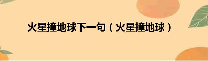 导读 大家好,今天小六子来为大家解答以下的问题,关于火星撞地球下一句,火星撞地球这个很多人还不知道,现在让我们一起来看看吧!1、火星撞地球