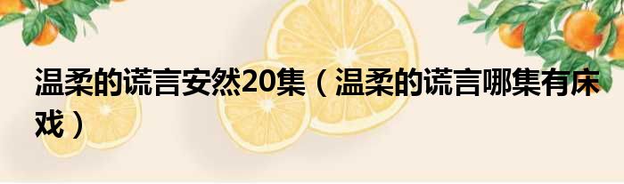 导读 大家好,今天小六子来为大家解答以下的问题,关于温柔的谎言安然20集,温柔的谎言哪集有床戏这个很多人还不知道,现在让我们一起来看看吧!1