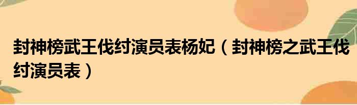 封神榜武王伐纣演员表杨妃(封神榜之武王伐纣演员表)