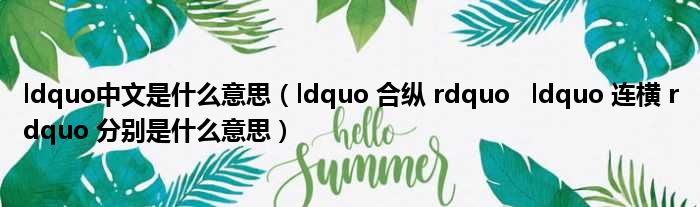 ldquo中文是什么意思(ldquo 合纵 rdquo ldquo 连横 rdquo 分别是什么意思)
