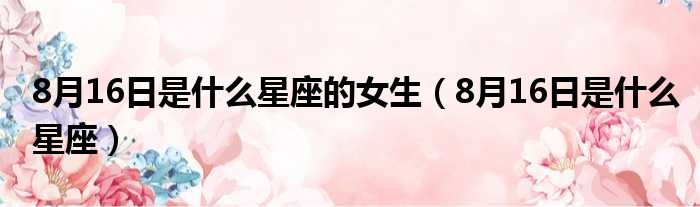 导读 大家好,今天小六子来为大家解答以下的问题,关于8月16日是什么星座的女生,8月16日是什么星座这个很多人还不知道,现在让我们一起来看看吧