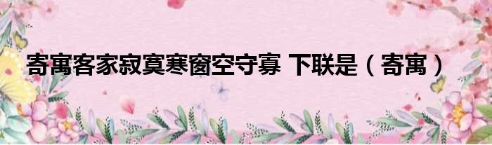 大家好,今天小六子来为大家解答以下的问题,关于寄寓客家寂寞寒窗空守寡 下联是,寄寓这个很多人还不知道,现在让我们一起来看看吧!