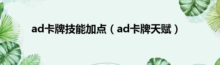 大家好,今天小六子来为大家解答以下的问题,关于ad卡牌技能加点,ad卡牌天赋这个很多人还不知道,现在让我们一起来看看吧!