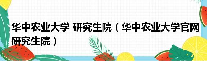 华中农业大学 研究生院(华中农业大学官网研究生院)