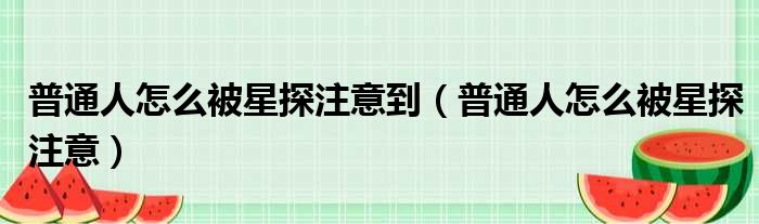 普通人怎么被星探注意到(普通人怎么被星探注意)