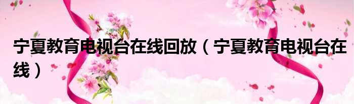 宁夏教育电视台在线回放(宁夏教育电视台在线)
