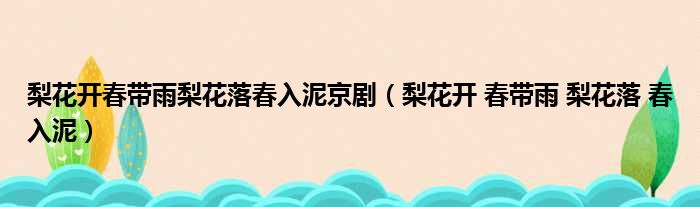 导读 大家好,今天小六子来为大家解答以下的问题,关于梨花开春带雨梨花落春入泥京剧,梨花开 春带雨 梨花落 春入泥这个很多人还不知道,现在