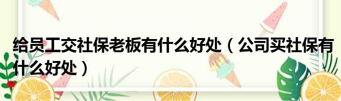 导读 大家好,今天小六子来为大家解答以下的问题,关于给员工交社保老板有什么好处,公司买社保有什么好处这个很多人还不知道,现在让我们一起来