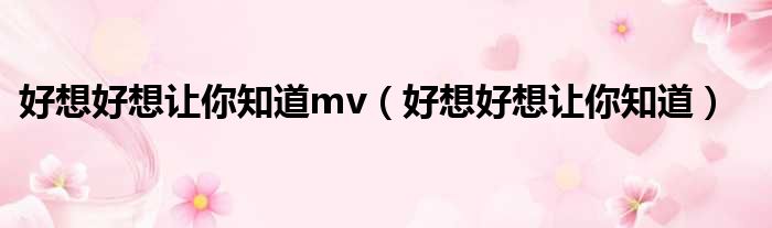 大家好,今天小六子来为大家解答以下的问题,关于好想好想让你知道mv,好想好想让你知道这个很多人还不知道,现在让我们一起来看看吧!