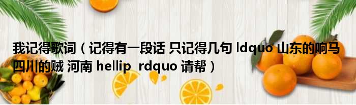 导读 大家好,今天小六子来为大家解答以下的问题,关于我记得歌词,记得有一段话 只记得几句 ldquo 山东的响马 四川的贼 河南 hellip rd