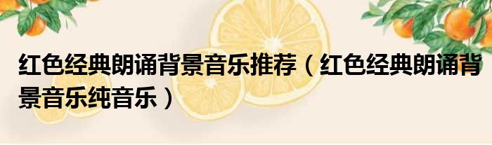 导读 大家好,今天小六子来为大家解答以下的问题,关于红色经典朗诵背景音乐推荐,红色经典朗诵背景音乐纯音乐这个很多人还不知道,现在让我们一