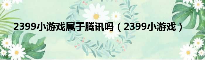 大家好,今天小六子来为大家解答以下的问题,关于2399小游戏属于腾讯吗,2399小游戏这个很多人还不知道,现在让我们一起来看看吧!