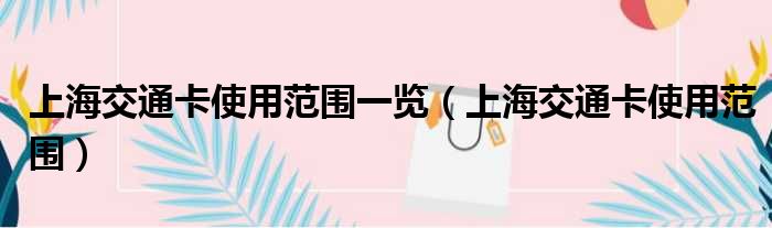 导读 大家好,今天小六子来为大家解答以下的问题,关于上海交通卡使用范围一览,上海交通卡使用范围这个很多人还不知道,现在让我们一起来看看吧