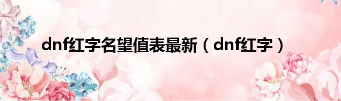 dnf红字名望值表最新(dnf红字)