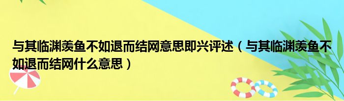 与其临渊羡鱼不如退而结网意思即兴评述(与其临渊羡鱼不如退而结网什么意思)