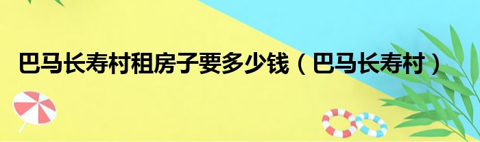 巴马长寿村租房子要多少钱(巴马长寿村)