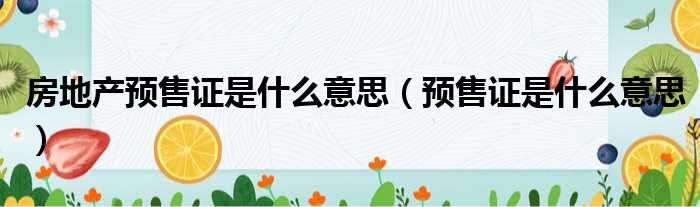 导读 大家好,今天小六子来为大家解答以下的问题,关于房地产预售证是什么意思,预售证是什么意思这个很多人还不知道,现在让我们一起来看看吧!1