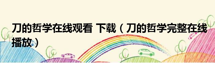 刀的哲学在线观看 下载(刀的哲学完整在线播放)