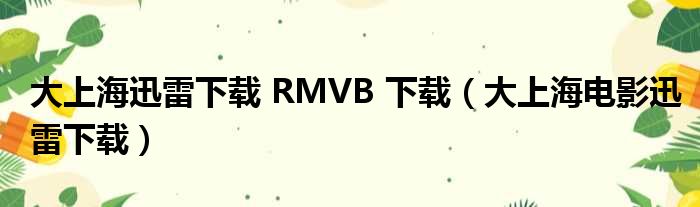 大上海迅雷下载 RMVB 下载(大上海电影迅雷下载)