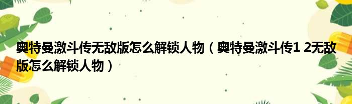 奥特曼激斗传无敌版怎么解锁人物(奥特曼激斗传1 2无敌版怎么解锁人物)