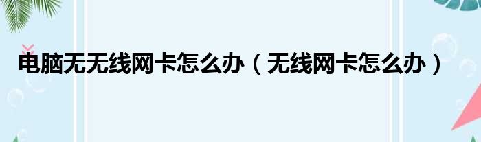电脑无无线网卡怎么办(无线网卡怎么办)