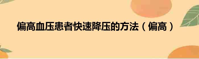 偏高血压患者快速降压的方法(偏高)