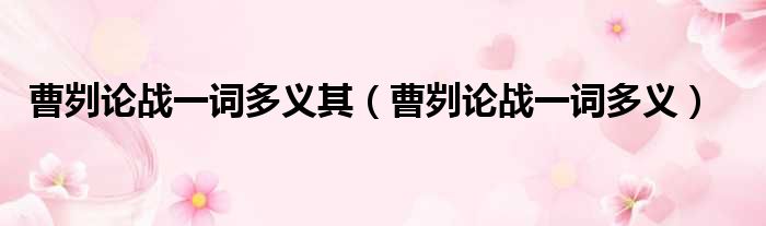 大家好,今天小六子来为大家解答以下的问题,关于曹刿论战一词多义其,曹刿论战一词多义这个很多人还不知道,现在让我们一起来看看吧!