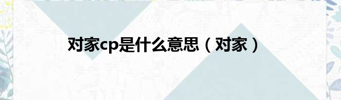 导读 大家好,今天小六子来为大家解答以下的问题,关于对家cp是什么意思,对家这个很多人还不知道,现在让我们一起来看看吧!1、对家 1 犹对手。