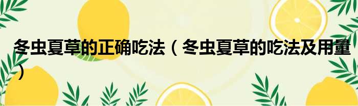 冬虫夏草的正确吃法(冬虫夏草的吃法及用量)
