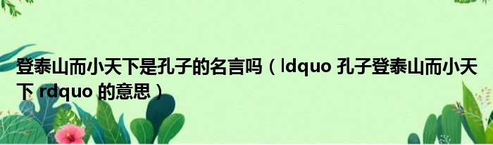 登泰山而小天下是孔子的名言吗(ldquo 孔子登泰山而小天下 rdquo 的意思)