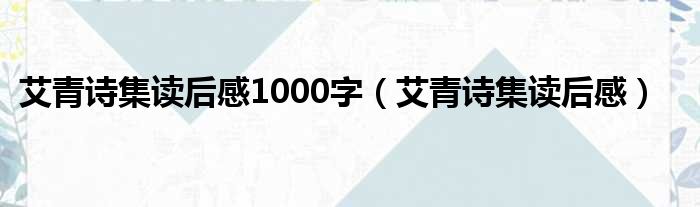 大家好,今天小六子来为大家解答以下的问题,关于艾青诗集读后感1000字,艾青诗集读后感这个很多人还不知道,现在让我们一起来看看吧!