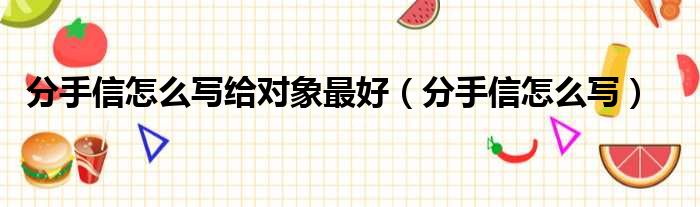 导读 大家好,今天小六子来为大家解答以下的问题,关于分手信怎么写给对象最好,分手信怎么写这个很多人还不知道,现在让我们一起来看看吧!1、绝