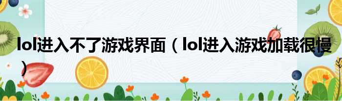 lol进入不了游戏界面(lol进入游戏加载很慢)