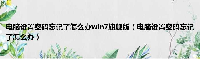 电脑设置密码忘记了怎么办win7旗舰版(电脑设置密码忘记了怎么办)