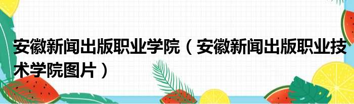 安徽新闻出版职业学院(安徽新闻出版职业技术学院图片)