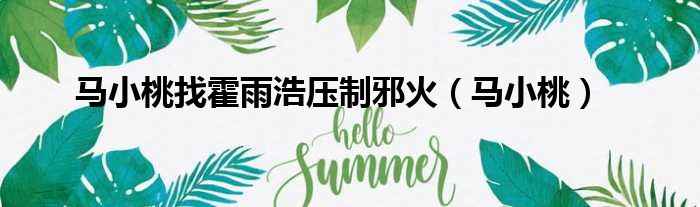 导读 大家好,今天小六子来为大家解答以下的问题,关于马小桃找霍雨浩压制邪火,马小桃这个很多人还不知道,现在让我们一起来看看吧!1、有可能不