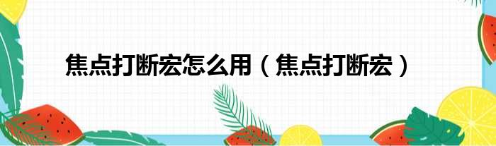 焦点打断宏怎么用(焦点打断宏)