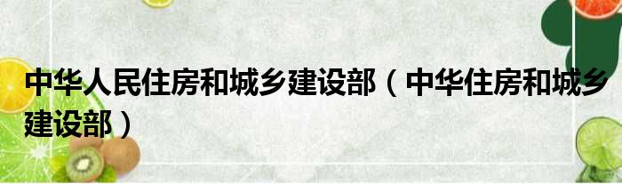 中华人民住房和城乡建设部(中华住房和城乡建设部)