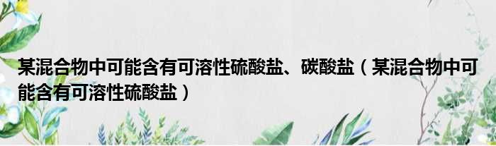 导读 大家好,今天小六子来为大家解答以下的问题,关于某混合物中可能含有可溶性硫酸盐、碳酸盐,某混合物中可能含有可溶性硫酸盐这个很多人还不