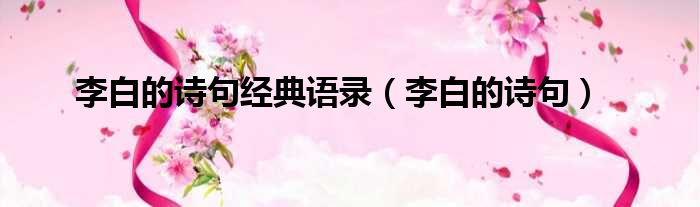 大家好,今天小六子来为大家解答以下的问题,关于李白的诗句经典语录,李白的诗句这个很多人还不知道,现在让我们一起来看看吧!