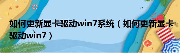 如何更新显卡驱动win7系统(如何更新显卡驱动win7)