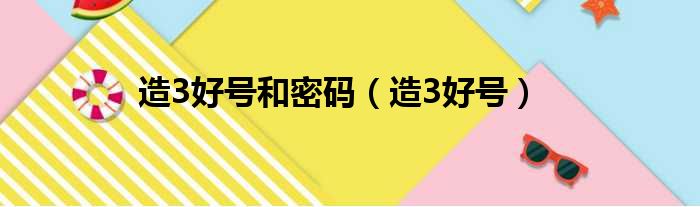 大家好,今天小六子来为大家解答以下的问题,关于造3好号和密码,造3好号这个很多人还不知道,现在让我们一起来看看吧!