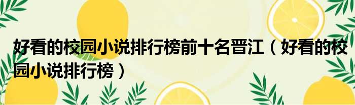 导读 大家好,今天小六子来为大家解答以下的问题,关于好看的校园小说排行榜前十名晋江,好看的校园小说排行榜这个很多人还不知道,现在让我们一