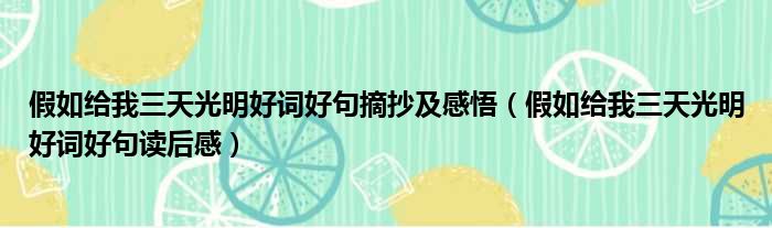 假如给我三天光明好词好句摘抄及感悟(假如给我三天光明好词好句读后感)