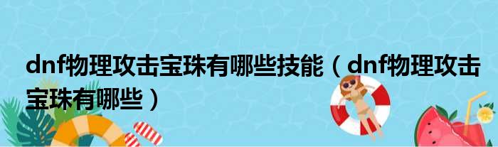 dnf物理攻击宝珠有哪些技能(dnf物理攻击宝珠有哪些)