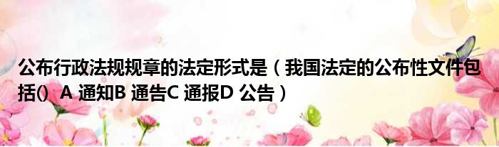 大家好,今天小六子来为大家解答以下的问题,关于公布行政法规规章的法定形式是,我国法定的公布性文件包括() A 通知B 通告C 通报D 公告这个很多人还不知道,现在让我们一起来看看吧!